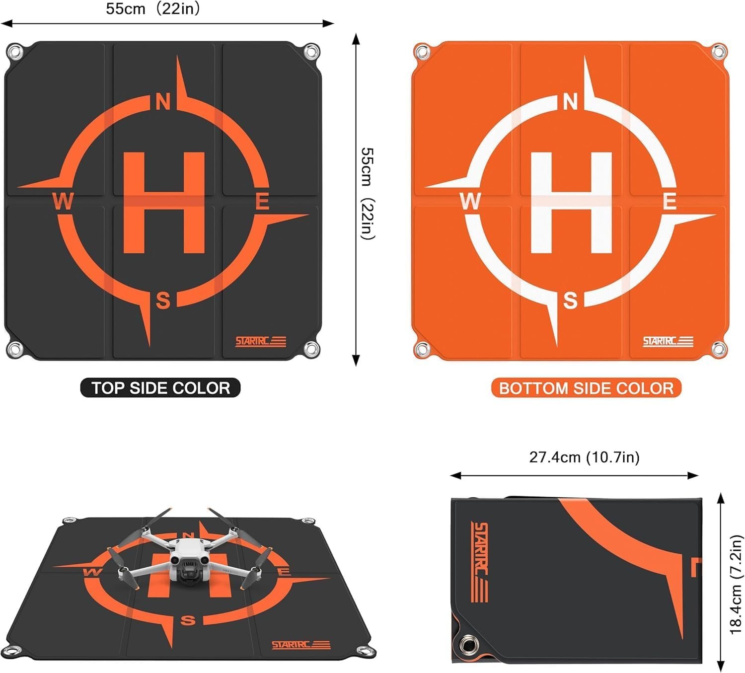 - 【Function & Portable】:22’’ x 22″ (55x55cm) size, easy to fold allows you to bring it anywhere. Help your drone find home position easy, strong enough to use on sand , overgrown grass, uneven dirt road or in the snow